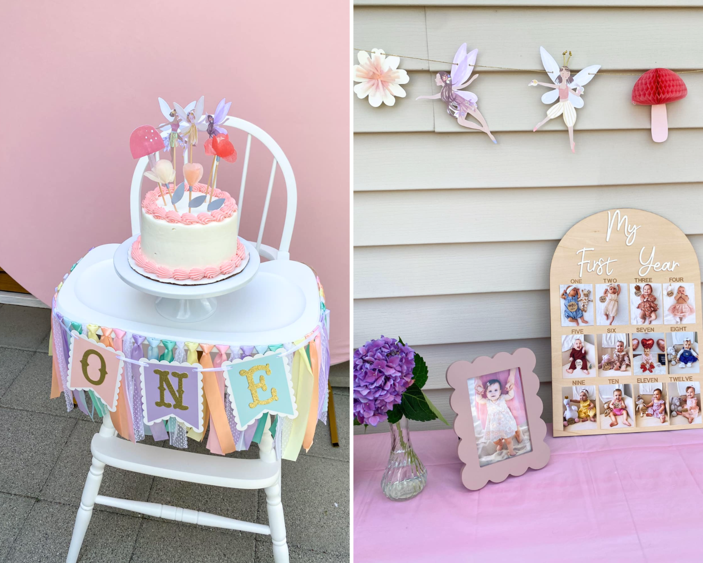 Bring a touch of magic to your baby girl’s special day with a fairy-inspired theme. Tulle skirts, glittery wands, and pastel floral accents make this celebration feel straight out of a storybook. Ultimately this is what we chose for our little girl’s first birthday, and it was beautiful!