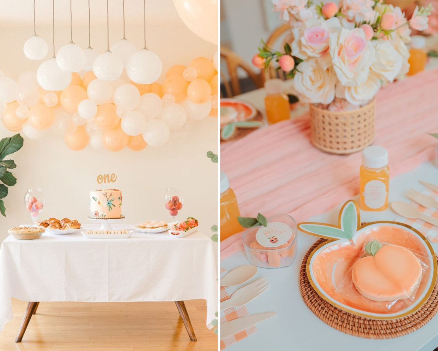 Peachy, soft, and oh-so-cute, this theme is perfect for a spring or summer birthday. From peach-colored balloons to tiny peach treats, it’s a warm and inviting way to celebrate your little princess.